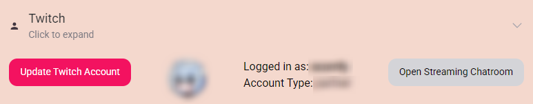 Within TipLink, go to the Settings page and expand the "Twitch" section. If successful - your profile information will be displayed within the interface.
