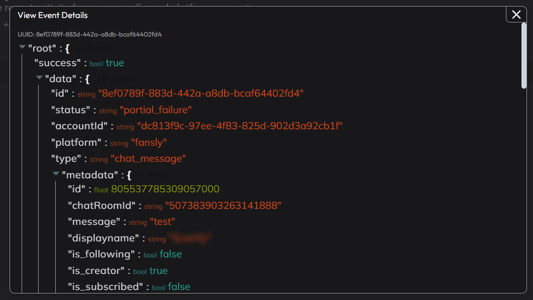 | Error | Something unexpected happened while processing the event, and may have partially failed. |