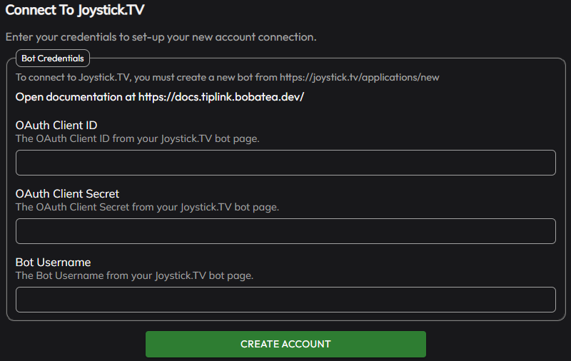 Here's how to manage your account connection with Joystick.TV within TipLink.