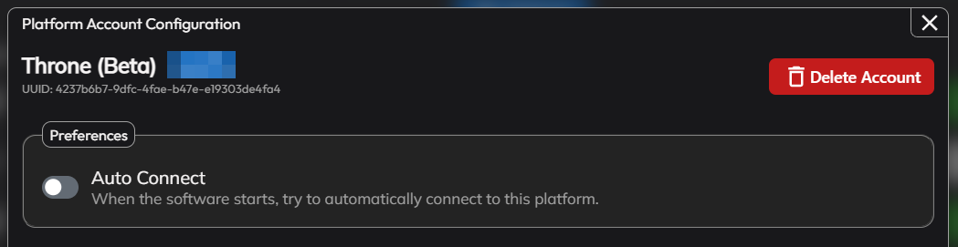 Enable this to automatically connect this account when TipLink starts. - Delete Account