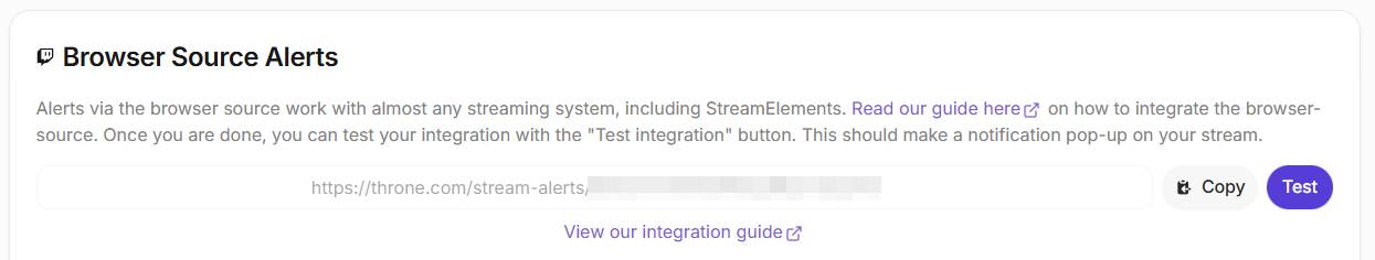 Copy this from your Throne Integration Settings under "Browser Source Alerts" (https://throne.com/profile/integrations/browsersource), and copy your overlay URL using the button provided at the top of the page.